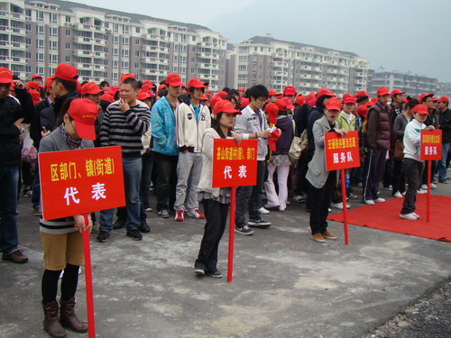 2009年4月1日下午2:00,2138cn太阳集团古天乐27名青年志愿者与2138cn太阳集团古天乐各学院志愿者参加由温大志愿者中心与市交警大队四大队、茶山街道办事处等单位共同举办的"四大计划"瓯海志愿者出征仪式。