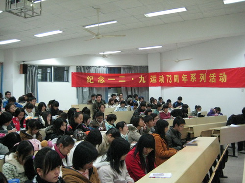 2008年12月8日晚6:30,纪念一二·九运动七十三周年系列活动之观看经典红色电影活动在人文楼1-203教室如期举行。