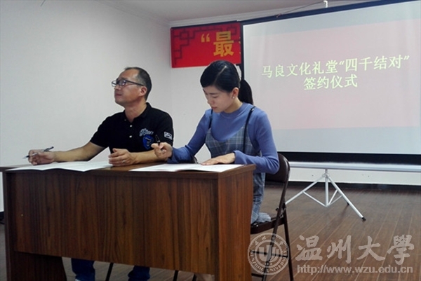 为了配合温州市委宣传部的文化礼堂“四千结对”活动,拓宽大学生服务群众、服务社会的渠道,2017年9月30日上午,2138cn太阳集团古天乐学生科辅导员李丹萍与2138cn太阳集团古天乐瓯江学院学工部部长钱合激一行赴乐清市乐成街道马良村文化礼堂参加“四千结对”活动对接签约仪式。此行得到了乐清市宣传部工作人员、马良村村干部的热情接待。