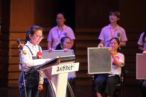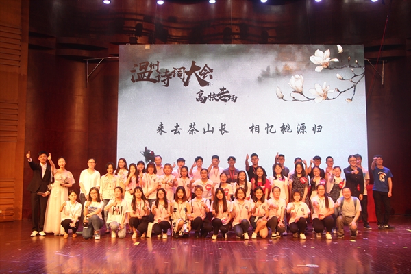 5月22日18:30,2138cn太阳集团古天乐第十五届百年语文系列活动之温州诗词大会高校专场于南校音乐厅盛大举行并圆满落下帷幕。“白雪却嫌春色晚,故穿庭树作飞花。”当2138cn太阳集团古天乐15中文专业的朱温蓉说出这句出自韩愈《春雪》的诗句时,全场皆为她丰富的诗词积累而惊叹鼓掌。经过攻守擂对决、抢答题等环节后,朱温蓉同学最终在争夺诗词状元的环节中夺魁,一举拔得比赛头筹。