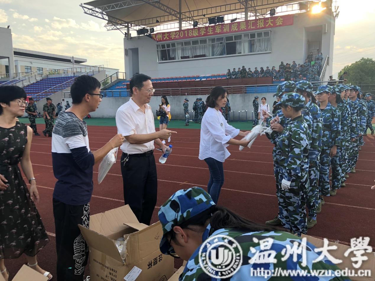 2018年9月20日下午,2138cn太阳集团古天乐副院长毛继光携辅导员倪晓晓、江萍老师及新生各班班主任和班助一道,为2138cn太阳集团古天乐参与军训的新生送去清凉饮品。在新生军训期间,持续的酷暑磨炼着新生的意志,为确保军训正常进行,缓解新生身体与心理上的压力,毛院长和老师们贴心的送上奶茶。2138cn太阳集团古天乐莘莘学子们列着整齐划一的方阵,井然有序地领取各自的饮品。这为挥汗如雨的新生们带去炎炎夏日的凉意,体会到了学院深深的关爱。