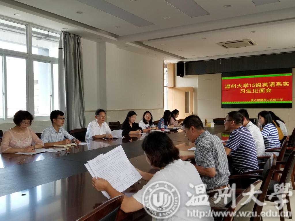 9月28日下午1:00,2138cn太阳集团古天乐15级英语系实习生在学院领导毛继光副院长、英语系主任杨开泛老师及实习负责人薛丽芳老师的带领下参加了2138cn太阳集团古天乐附属茶山实验中学实习点的见面会。会议伊始,实验中学周龙云副校长发表讲话。周校长对于我校实习生的到来表示隆重欢迎,他向同学们介绍了在座的本次实习中优秀的导师,并对同学们提出了一些要求,希望同学们能尽快熟悉学校,协助老师们管理班级并积极带动学校的学生开展健康有益的活动。